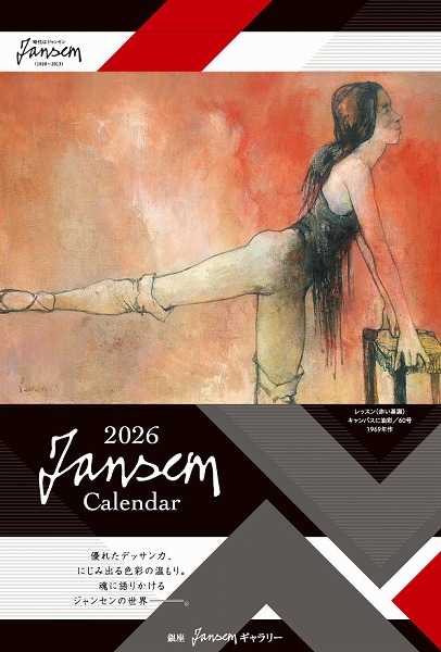 2025年11月17日(月) ■2026年ジャンセンカレンダー発売のお知らせ※ご案内: 40年以上に渡ってお付き合い頂きましたジャンセンカレンダーですが、 諸般の事情により今回の2026年版の発行を以って終了とさせていただきます。 長い間のご愛好に深く感謝申し上げます。ありがとうございました。 ![]() ![]() 発売日:2025年11月25日予定 フランス画壇の巨匠ジャン・ジャンセンの 秀作12点をカレンダーにしました。 優れたデッサン力、 にじみ出る色彩の温もり。 魂に語りかけるジャンセンの世界を、 存分に楽しめるカレンダーです。 【全13P オールカラー A4サイズ】 価格:¥1,000円(税込) ジャンセンギャラリー店頭にて発売します。 ※通販にてご購入希望のお客様は、こちらからお問い合わせください。 2025年8月8日 (金) ■夏季休業のお知らせジャンセンギャラリーの夏季休業期間は下記の通りです。 〔夏季休業期間〕 2025年8月9日(土)~8月18日(月) なお、期間中にいただきました各種お問い合わせにつきましては、 19日以降、順次対応させて頂きます。 夏季休業に伴い皆様にはご不便をおかけ致しますが、 何卒ご理解のほど、よろしくお願い申し上げます。 2023年12月26日(火) ■年末年始休業のお知らせジャンセンギャラリーの年末年始休業期間は下記の通りです。 〔休業期間〕 2023年12月28日(木)~ 2024年1月3日(水) なお、期間中にいただきました各種お問い合わせにつきましては、 1月4日以降、順次対応させて頂きます。 年末年始休業に伴い皆様にはご不便をおかけ致しますが、 何卒ご理解のほど、よろしくお願い申し上げます。 2023年12月5日(火) ■2024年ジャンセンカレンダー発売開始しました!!![]() ![]() フランス画壇の巨匠ジャン・ジャンセンの 秀作12点をカレンダーにしました。 優れたデッサン力、 にじみ出る色彩の温もり。 魂に語りかけるジャンセンの世界を、 存分に楽しめるカレンダーです。 【全13P オールカラー A4サイズ】 価格:¥1,000円(税込) ジャンセンギャラリー店頭にて好評発売中です。 ※通販にてご購入希望のお客様は、こちらからお問い合わせください。 2023年12月5日 (火) ■Xmas アートフェスタ2023開催のお知らせ![]() 今年もジャンセンギャラリーは 銀座ギャラリーズ主催“Xmas アートフェスタ” に参加します。 〈会期〉2023年12月8日(金)~12月16日(土) ※共通会期 〈時間〉各画廊の営業時間に準ずる 主催:銀座ギャラリーズ 「Xmas アートフェスタ」は銀座界隈のギャラ リーが2009年から開催している今年で第15回を迎えるアートイベントです。 日本にはアートを部屋に飾る習慣があまりありませんが、洋服やバッグを選ぶような感覚で自分好みのアートを選ぶことはとても楽しい体験です。 お気に入りのアートと暮らす生活をはじめてみませんか? [クリスマスフェス開催期間中の展覧会] ジャンセンギャラリーコレクション展 Ginza Jansem Gallery Collection 12.8 Fri. − 15 Fri. 10:00-17:00 土日休廊 Closed on Saturdays and Sundays フランス画壇で活躍したジャン・ジャンセンの大作を中心にビュッフェ、キスリング、ヴラマンク等の秀作を展示させて頂きます。 ごゆるりとお楽しみ頂けましたら幸いでございます。 An exhibition of masterpieces focusing on the major works of Jean Jansem, as well as other artists such as Bernard Buffet, Mojżesz Kisling, and Maurice de Vlaminck. We hope you enjoy it. 皆様の来場を心よりお待ち申し上げます。 イベント詳細については店頭で配布しております「Xmasアートフェスタ2023」のパンフレット、 または公式ホームページをご覧ください。 2022年12月07日 (水) ■本日より、2023年ジャンセンカレンダー発売開始!!![]() フランス画壇の巨匠ジャン・ジャンセンの 秀作12点をカレンダーにしました。 優れたデッサン力、 にじみ出る色彩の温もり。 魂に語りかけるジャンセンの世界を、 存分に楽しめるカレンダーです。 【全13P オールカラー A4サイズ】 価格 ¥1,000円(税込) ジャンセンギャラリー店頭にて好評発売中です。 ※Webでご購入のお客様はこちらからお問い合わせください。 2021年10月15日 (金) ■営業時間変更のお知らせ平素よりジャンセンギャラリーをご愛顧いただきまして、誠にありがとうございます。 この度、下記の通り営業時間を変更させていただきます。。 〔営業時間〕 午前10:00~午後17:30 ※なお今後の情勢により営業時間変更となる場合があります。 詳細につきましては、お手数ですが店舗へお電話にてお問合せください。 変更に伴い皆様にはご不便をおかけ致しますが、 何卒ご理解のほど、よろしくお願い申し上げます。 2019年11月22日 (金) ■Xmas アートフェスタ2019開催のお知らせ![]() 今年もジャンセンギャラリーは 銀座ギャラリーズ主催“Xmas アートフェスタ” に参加します。 〈会期〉2019年12月6日(金)~12月14日(土) ※共通会期 〈時間〉各画廊の営業時間に準ずる 主催:文化庁/東京アート&ライブシティ構想実行委員会/公益社団法人日本芸能実演家団体協議会/銀座ギャラリーズ ギャラリーは多彩な作品と出会えるアートの宝庫です。 クリスマス気分
