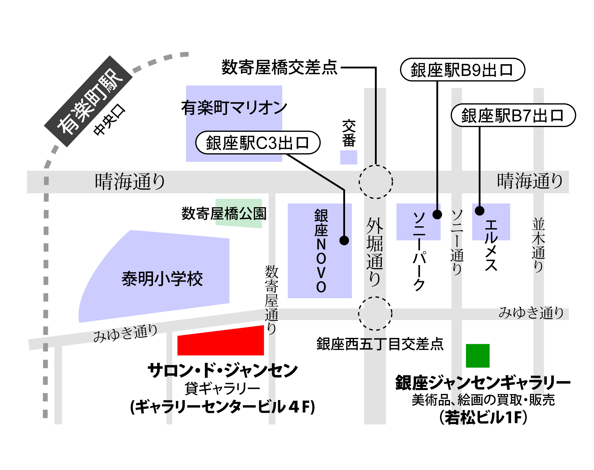 ![]() 〒104-0061 東京都中央区銀座6-6-19 若松ビル1F TEL 03-3573-0095 FAX 03-3571-7459 フリーダイヤル:0120-00-1898 ![]() 東京メトロ銀座線・丸の内線・日比谷線 『銀座駅』B7出口(エルメス前)より徒歩2分。 JR『有楽町駅』から徒歩6分。 [地図をクリックすると、 大きい地図がご覧になれます] |